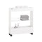 De stevige en glanzende metalen onderdelen zorgen voor een stabiele constructie. Twee wielen zijn voorzien van remmen voor veilig gebruik en soepele verplaatsing – ideaal voor een betrouwbaar en elegant keukenmeubel op wielen.