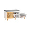 Deze multifunctionele schoenenbank combineert een schoenenkast met een opbergbank door middel van 3 ruime lades en 2 ventilatiedeuropeningen. Het biedt voldoende ruimte voor schoenen, paraplu's, tassen, en andere accessoires, zodat uw hal altijd netjes en georganiseerd blijft.