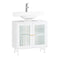 De kast biedt extra gesloten opbergruimte onder de wastafel, waarin je toiletartikelen kunt opbergen.