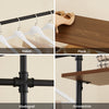 - Robuuste materialen: frame van ijzeren buizen van 2,5 cm, kunststof connectoren en E1 MDF-planken; krasbestendig en slijtvast. Maat: L 168 × D 46 × H 220 cm Totaal draagvermogen: 90 kg (stangen 15 kg × 3; planken 15 kg × 3).