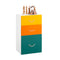 Warme tinten als oranje, geel en blauw. Het is zeer geschikt voor een kinderkamer.